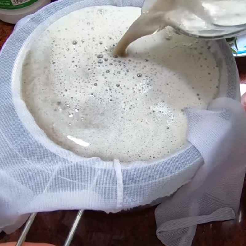 • Bỏ hỗn hợp hạt điều và đậu đen đã xay vào túi lóc, chắc lấy sữa. Nhớ sử dụng găng tay vì để đảm bảo vệ sinh.