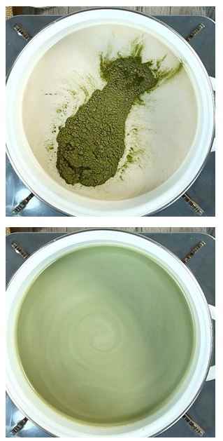 - Bước 2: Đun sữa trên bếp với lửa vừa nhỏ, cho bột trà xanh vào khuấy đều tay để tan hết bột. Nếu bạn sợ bột bị vón cục nhiều thì hòa tan bột trà xanh với ít nước nóng trước rồi sau đó cho vào sữa. Sữa sôi thì tắt bếp, nếu bọt nhiều thì hớt bớt bọt.