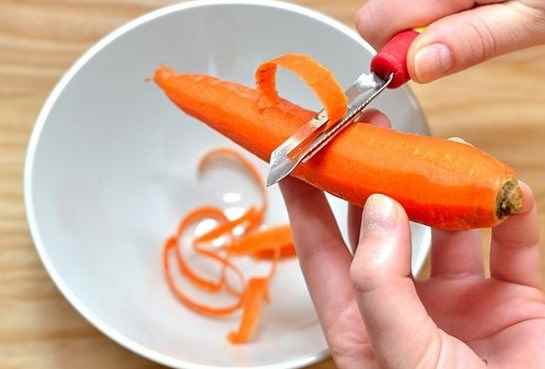 - Cà rốt rửa sạch sau đó rọt vỏ thái nhỏ.