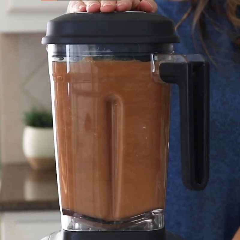 Bước 3: Cho thêm bột cacao, nước, muối và đường phèn hoặc đường thốt nốt vào máy xay và tiếp tục xay cho hỗn hợp hòa lẫn vào nhau.